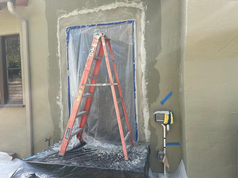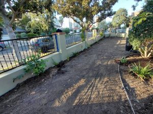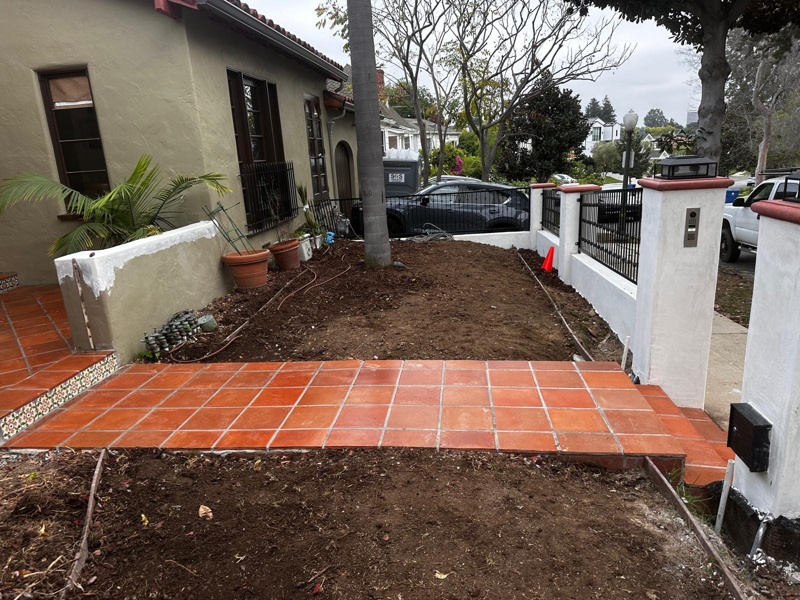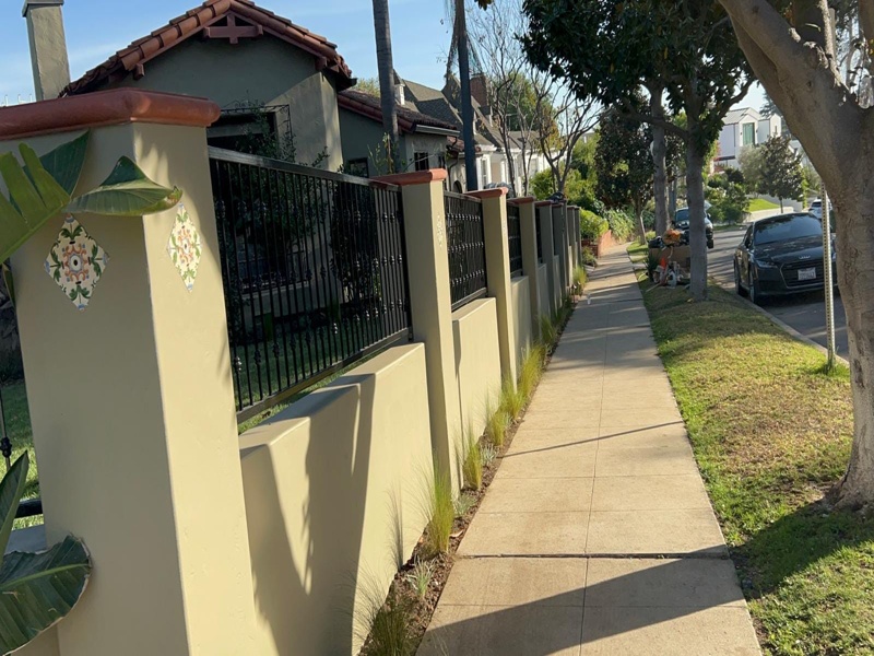 Wellworth Ave Los Angeles Front Yard Remodel | Stucco Walls, Iron Fence, Tile & Landscape