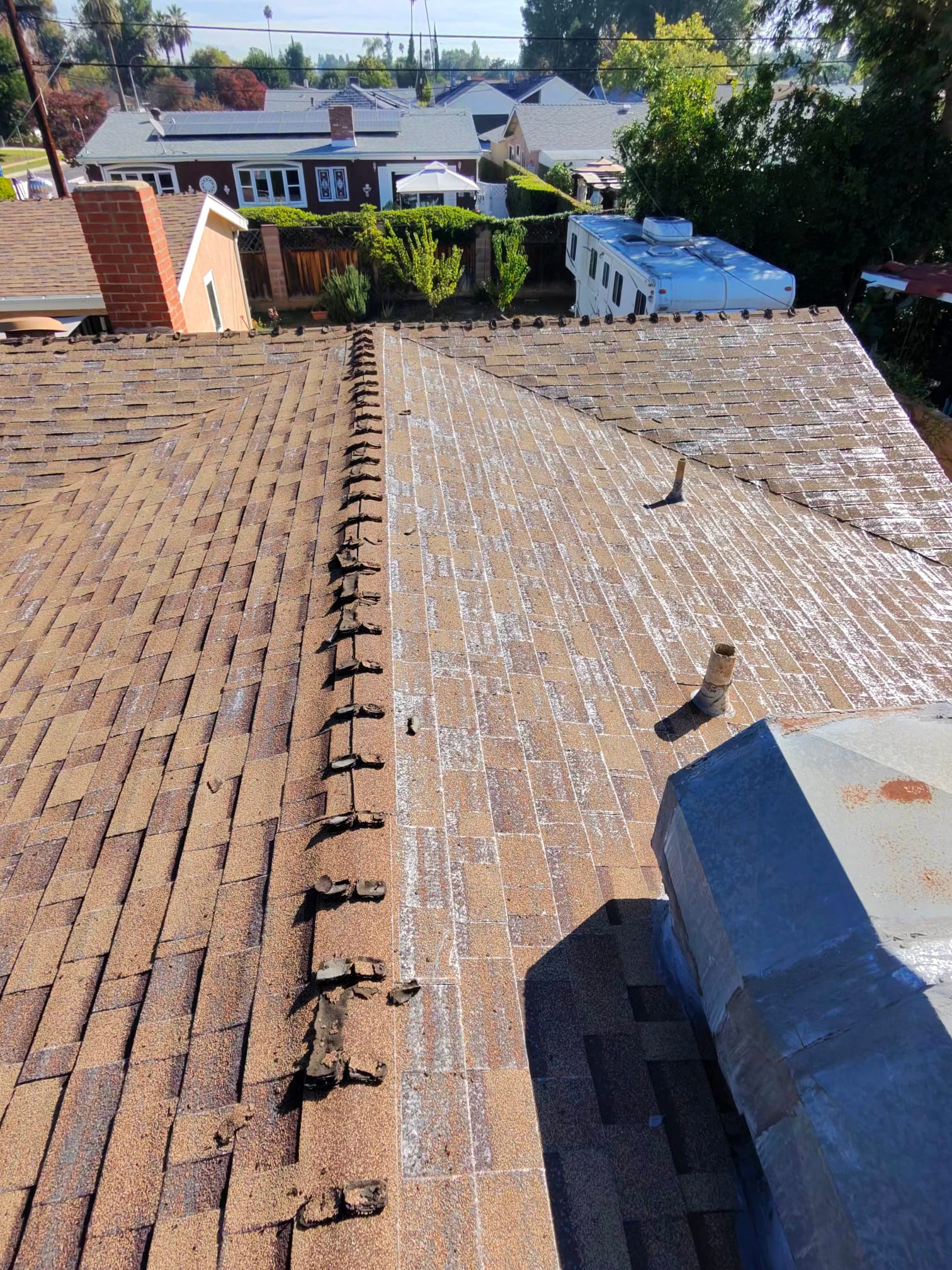 - Roof Replacement: Removed the existing roof and installed high-quality roofing materials designed to withstand California weather, including new underlayment, flashing, and waterproofing.
